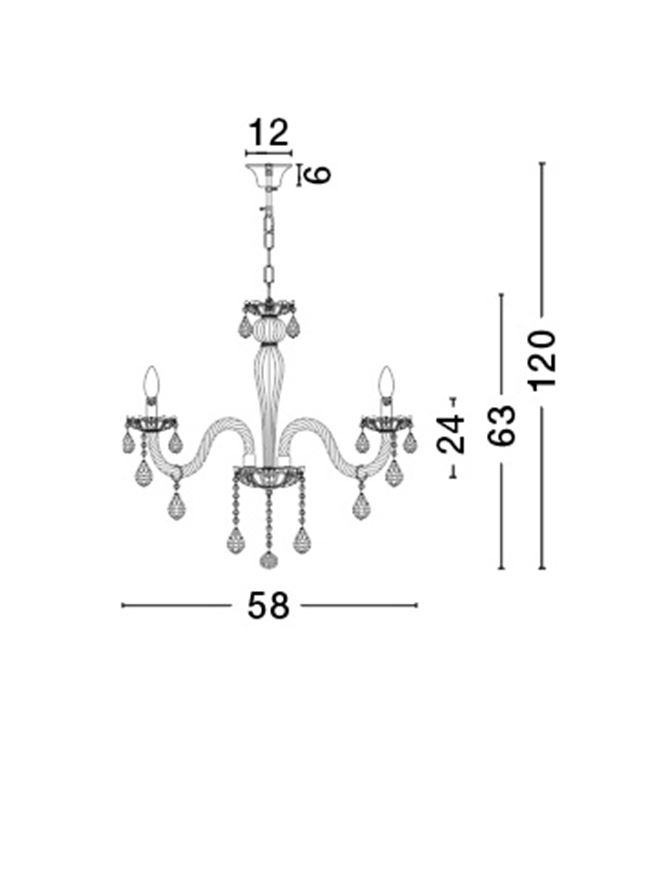 Material: Gold Metal & Crystal Bulb Type: LED E14 20x5W 230V IP20 Bulb Excluded Category: CLASSIC LUMINAIRES Dimensions: D: 85 H1: 60 H2: 120 cm